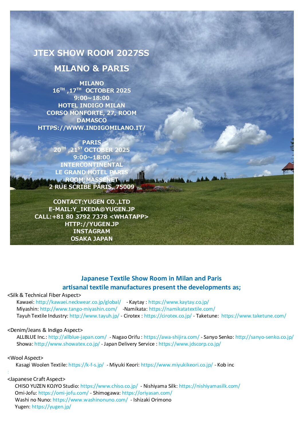 JTEX SHOW ROOM 2026SS PARIS 16TH~18TH October 2024